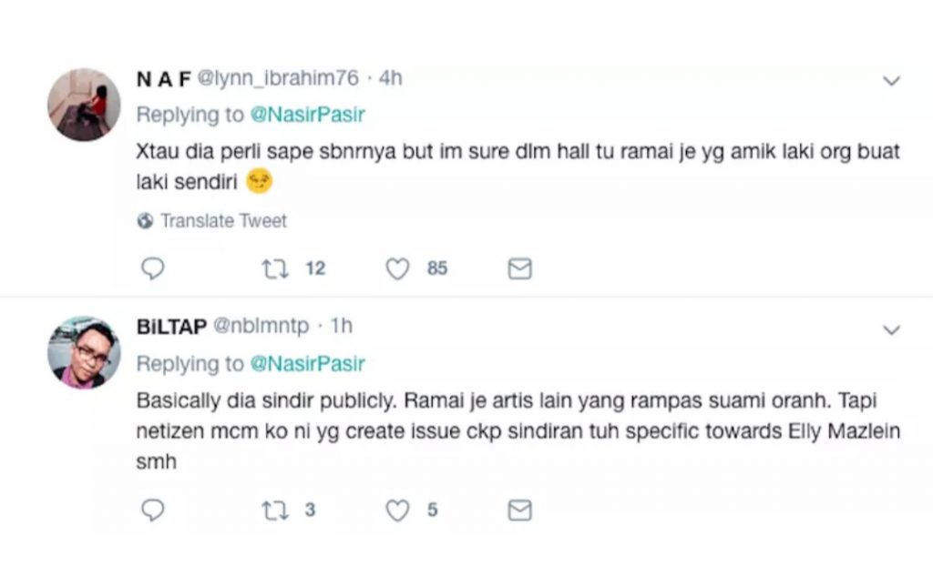 Berikutan sedutan video tersebut, di laman media sosial Twitter milik seorang pengguna Twitter @nasirpasir, netizen membuat spekulasi bahawa ucapan tersebut ditujukan khas kepada Elly Mazlein ekoran perkahwinannya dahulu dengan bekas suami orang.